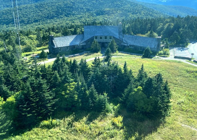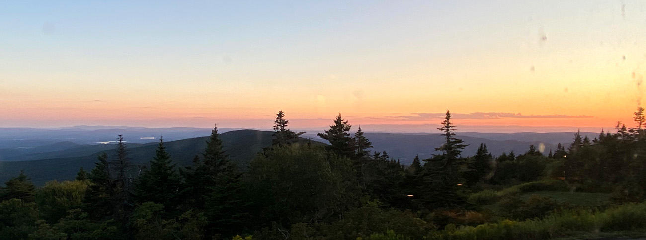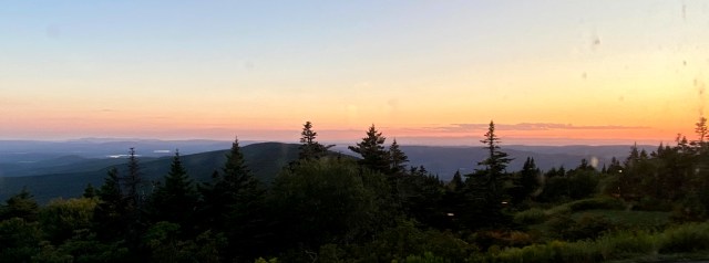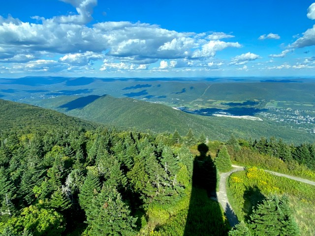 and the goal below – Mount Greylock Veterans War Memorial Tower. Below the view from the CCC lodge where I have now stayed four times.