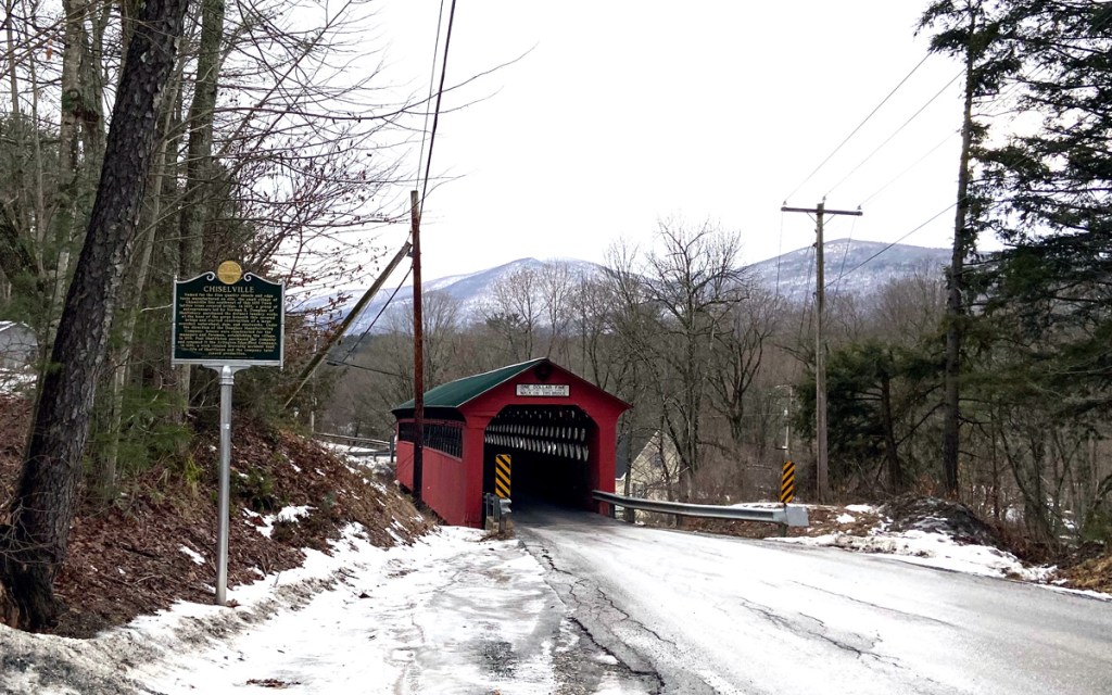 Off I went over the hills to Manchester, and instead of heading down US Route 7A (the original US 7) I have a fun road to the east between 7A and the “new” super slab 7. Happy to show you on a map in person, but before you get to Manchester 0n Route 30, turn left on Richville Road – when it ends at River Road turn left (south) it becomes Sunderland Hill Road – and you cross the Chiselville Covered Bridge to East Arlington. I explored Chiselville and shared with you 4 February 2021. I love this road, and have now learned from the tourist booklet THE SHIRES OF SOUTHWESTERN VERMONT that this bridge is shown in the Diane Keaton movie BABY BOOM. Well, also in reading the booklet about the various towns I learned that my favorite Peru (Vermont that is) is a major filming location for the movie – which yes, I watched the other night for the first time, and enjoyed it.