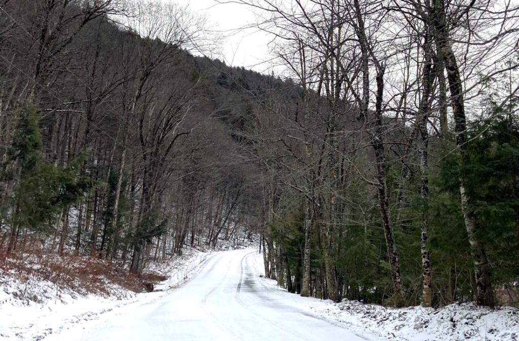 and, as noted in my 2019 story of this road – NO WINTER MAINTENANCE. Not much snow yet this year, but I decided it best to stop and turn around at this hiking parking area at the west end of the road below.