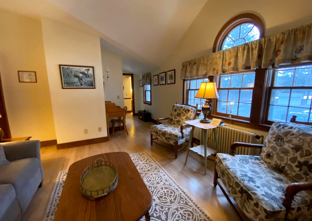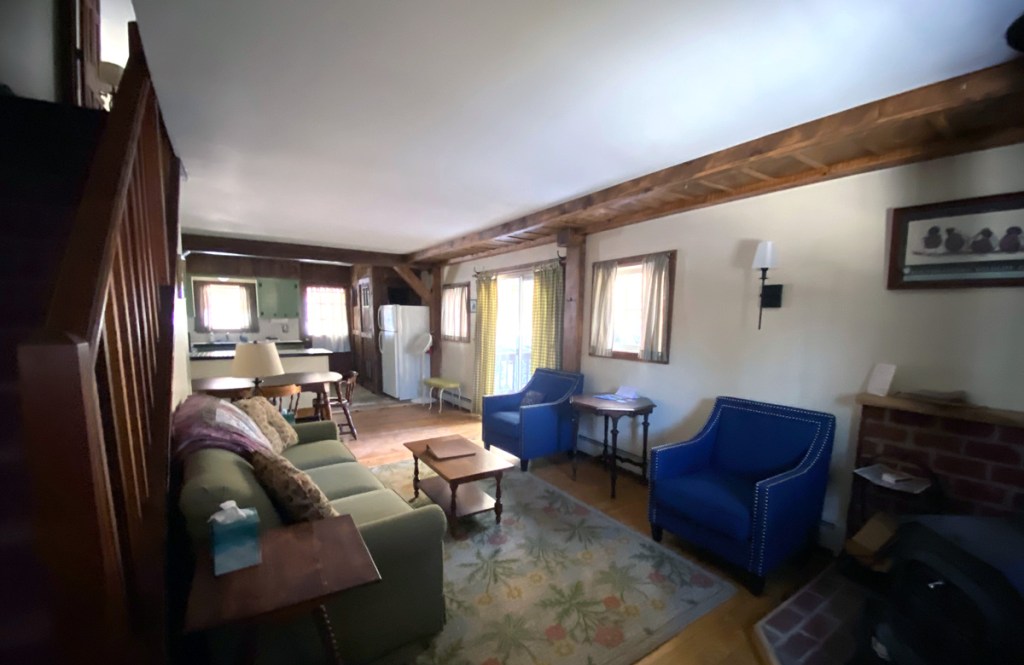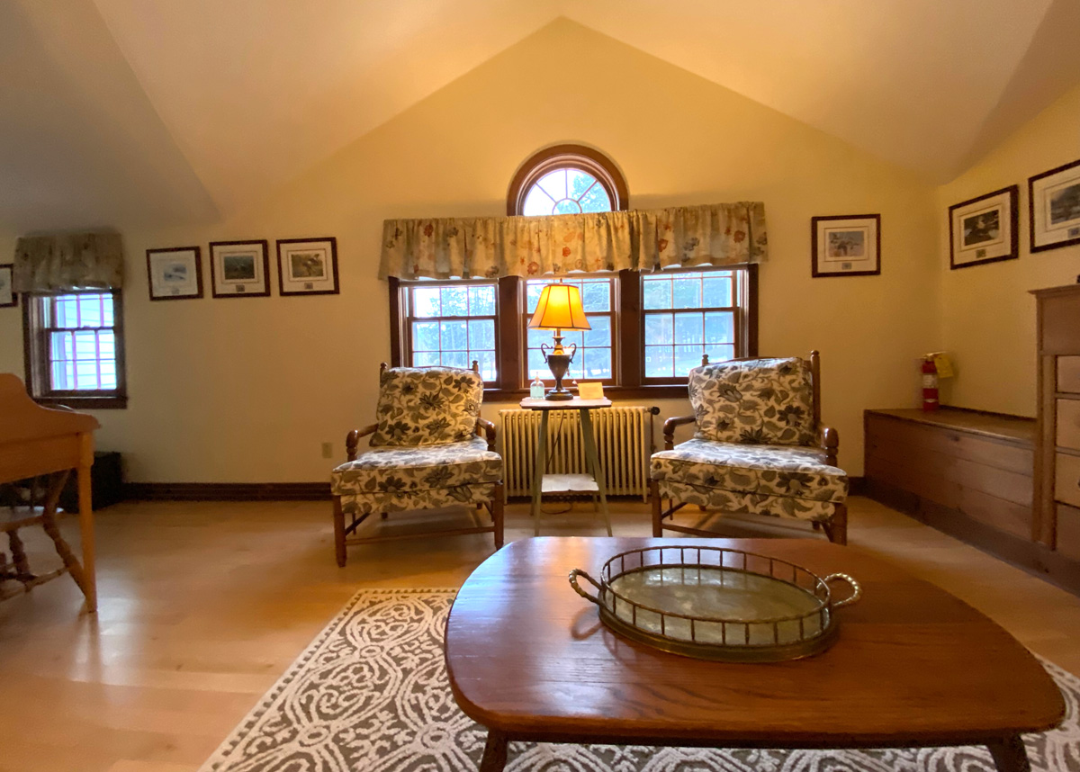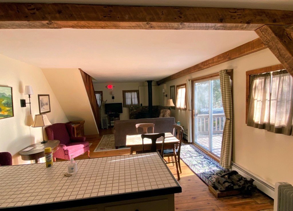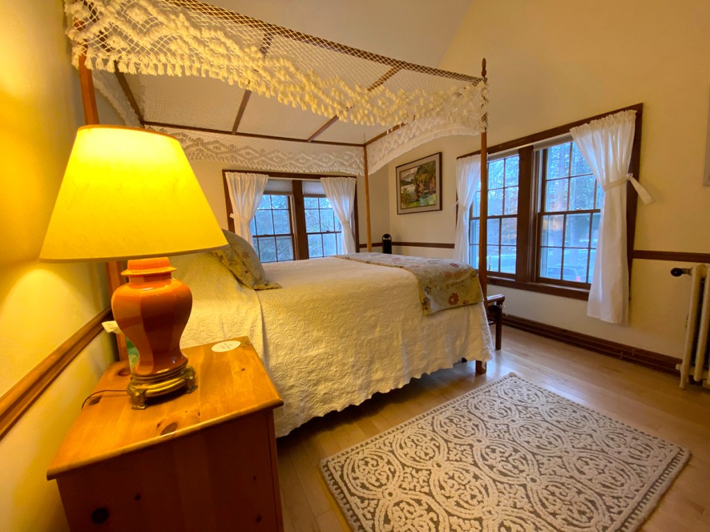 when I checked in I asked if I could see all the rooms in the Inn, and also the apartments in the old mill house. Mary Beth told me the rooms were unlocked, and feel free to look (I was the only one there when I arrived), and in the morning she gave me the keys to the Millhouse apartments. The Millhouse is at the entrance to the Inn, and straddles a brook that flows into the Battenkill River. There are three “apartments” each with two bedrooms upstairs. The end apartments (shown below) have decks over the brook. Gary and I are making plans for stays.