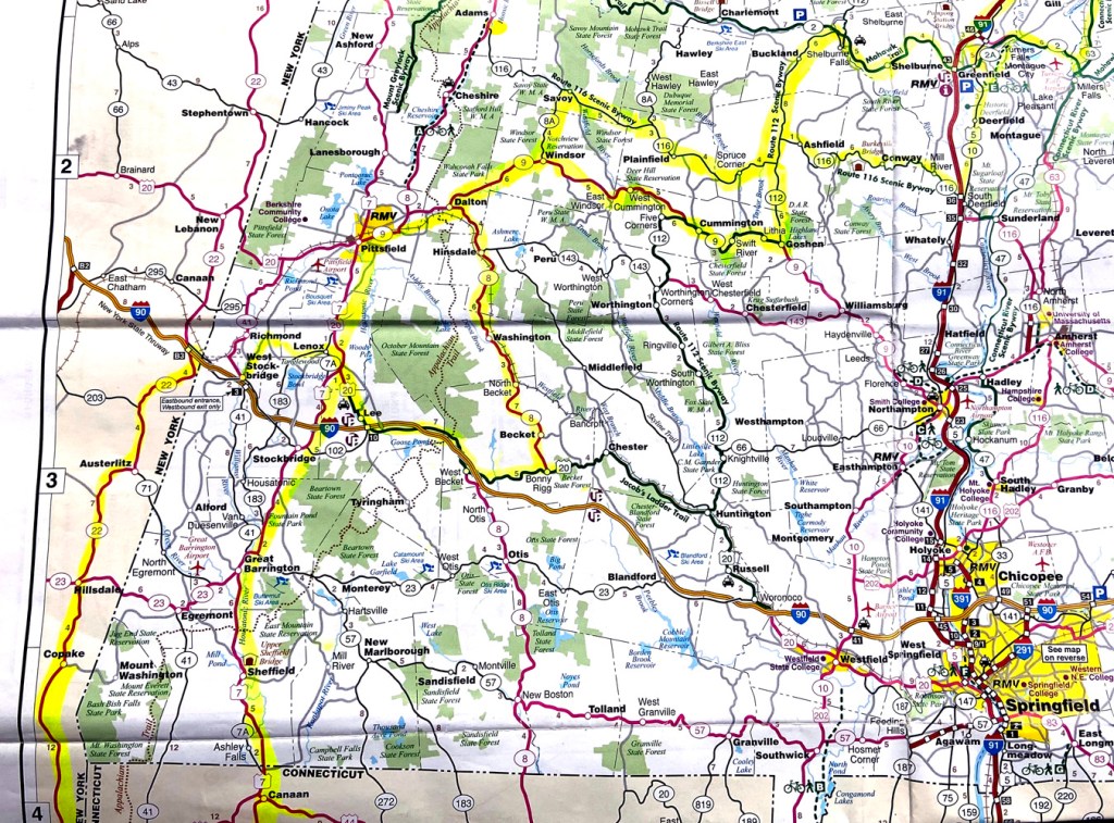 Briefly my route “TO AND FRO” was from Sherburne Falls, MA, down Route 112 to Buckland, left (west) on Route 116 to Savoy, then south on 8A to Windsor. Then Route 9 to Dalton and Route 8 south to US 20 – then west to Lee and eventually to Lenox. In my study of past trips some of this route I had been on, some maybe in the opposite direction, and at different times of the year meaning you see different things. But it had been awhile. Do click to enlarge the map — later I will provide my route home and “new stops and discoveries.”