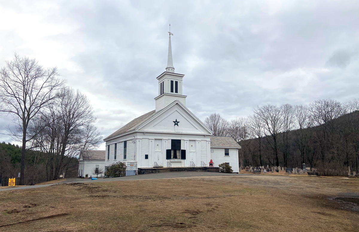 As with many towns, you have to swing off the “new” main road on the old route to see the town. Below is “downtown” Buckland — historical society on the left, and church with town offices behind in the right hand image. Remember my images may be clicked for larger views.
