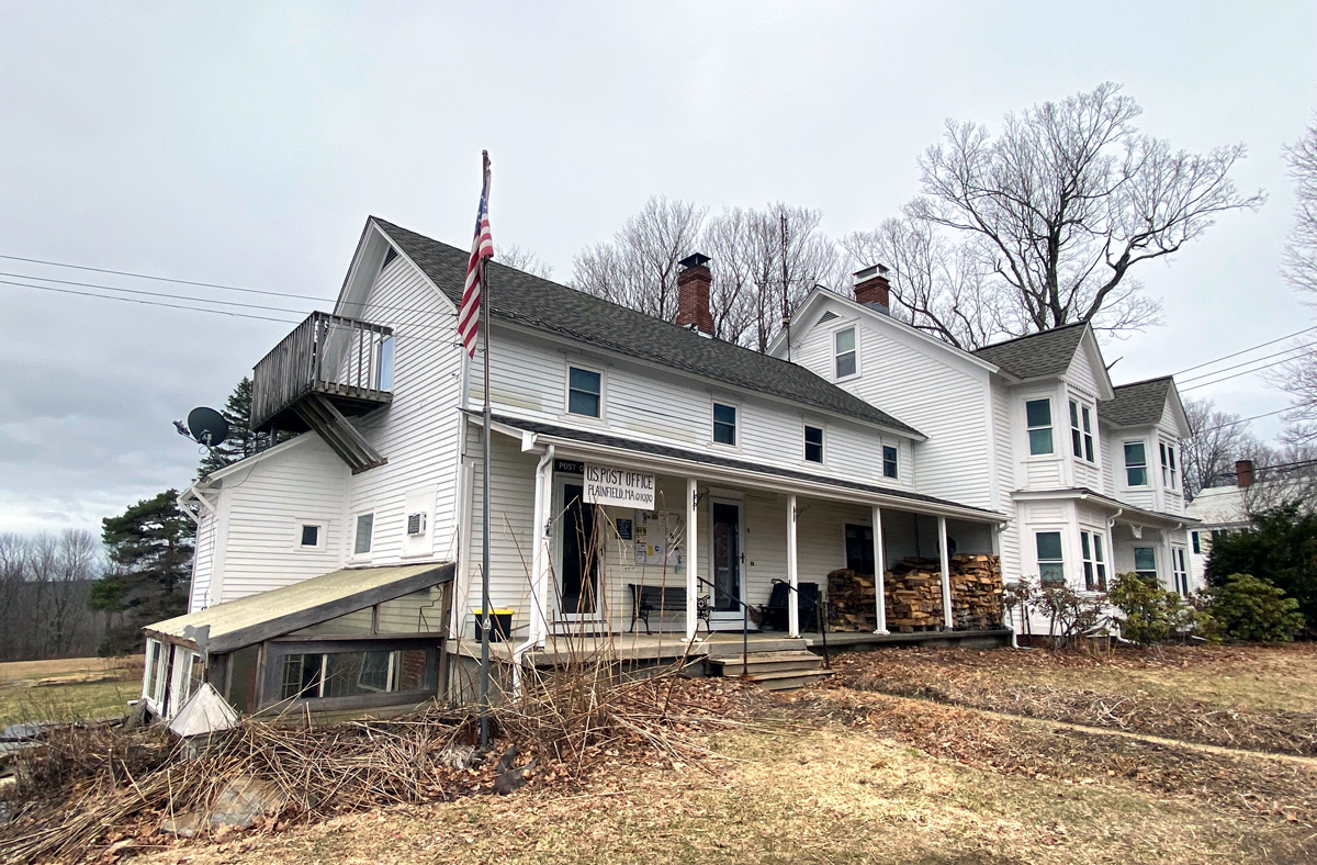 Yes, I remembered I had been through Plainfield on Route 116. Here is the main intersection on the left, and the post office to the rear of a home. In the parking lot is a bank of post office boxes for mail pick-up.