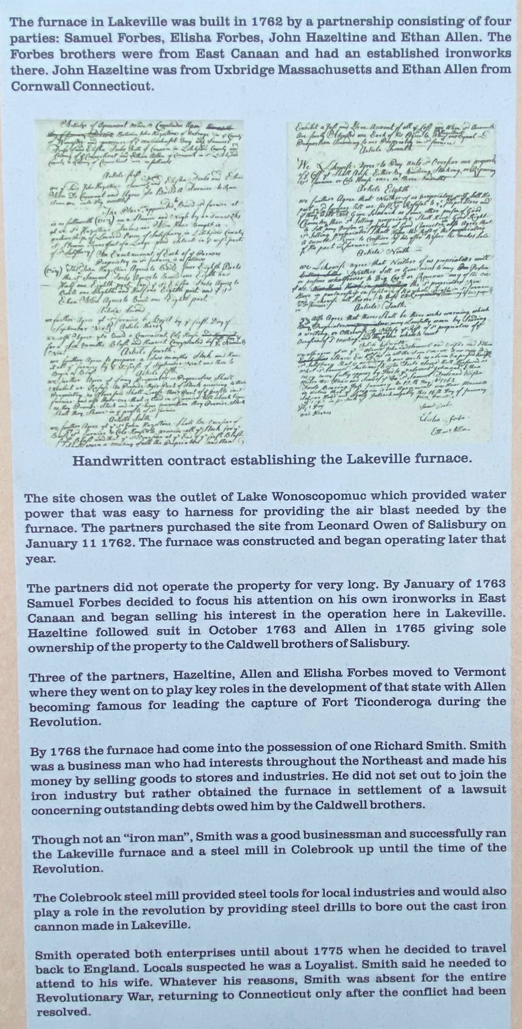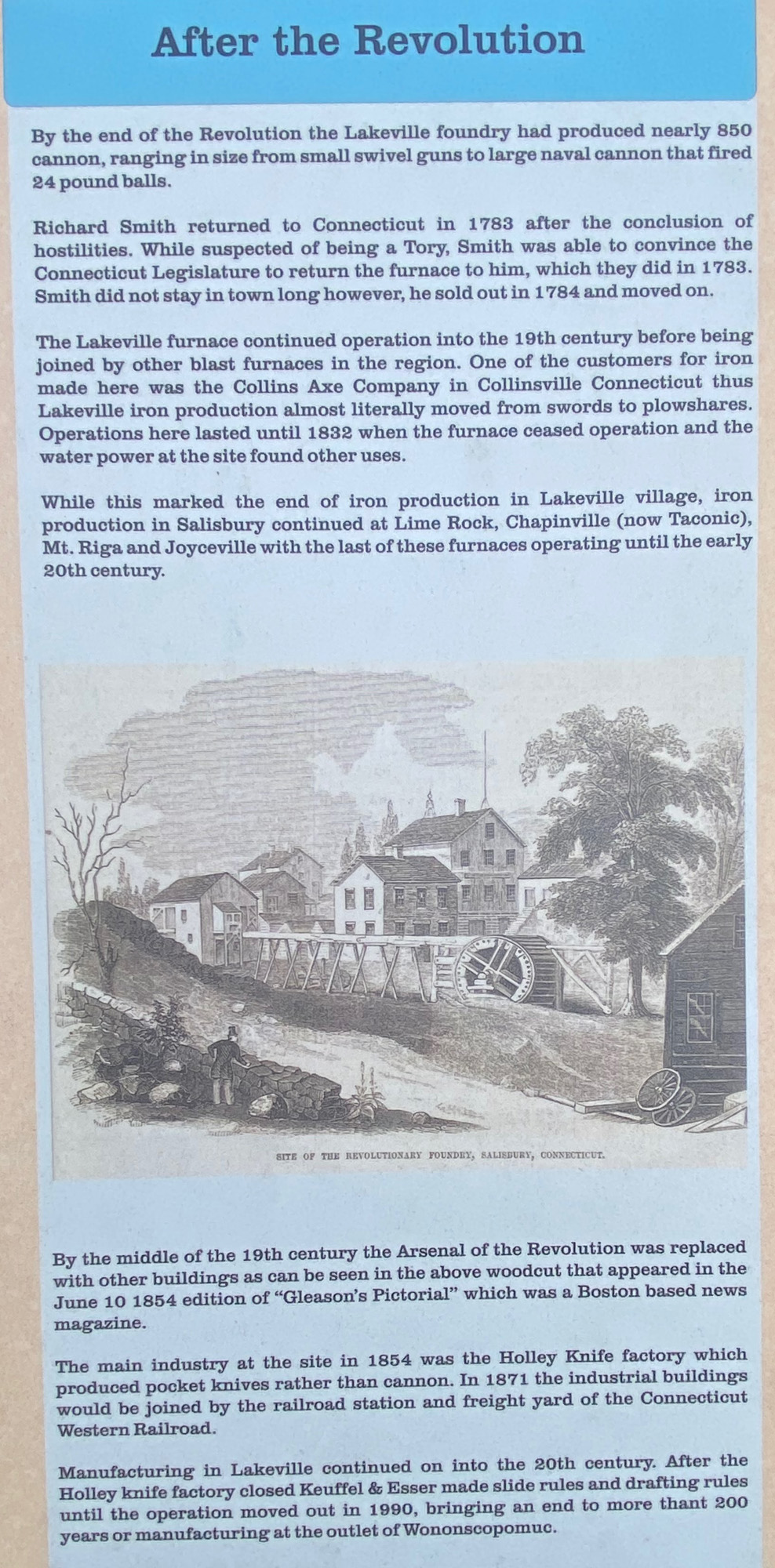I had an understanding that iron ore was easy to obtain in the Litchfield Hills in northwestern Connecticut, thus many foundries that made cannon and the like for the American Revolution, including in Litchfield — the destination for some lead that I wrote about (winning a state contest) almost seven decades ago, and will share again in the July 2026 WALPOLE CLARION. Oh, and the local bank in this area is, of course, IRON BANK.