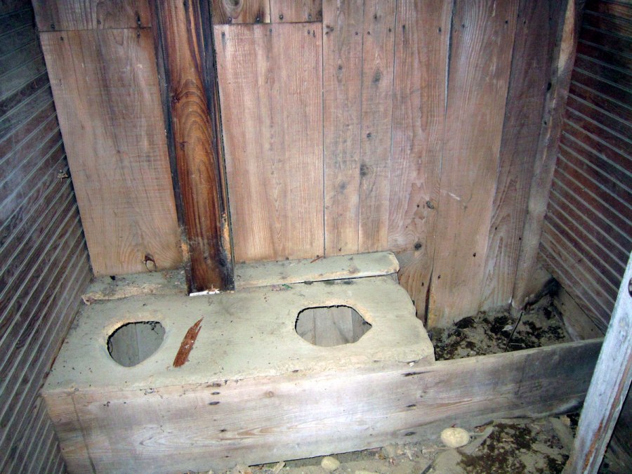 The boy’s outhouse in the wooden shed addition