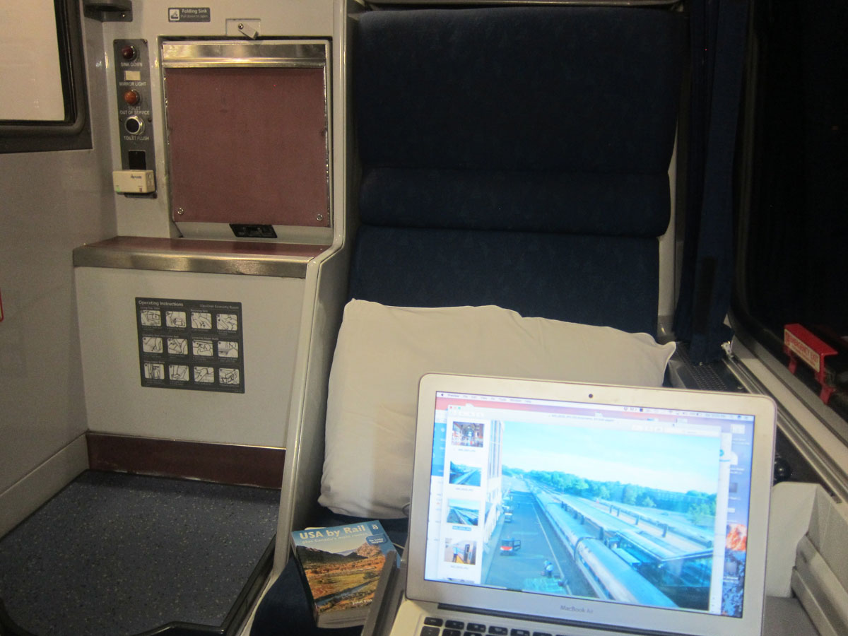 Note fold-down sink (brown panel) above toilet.