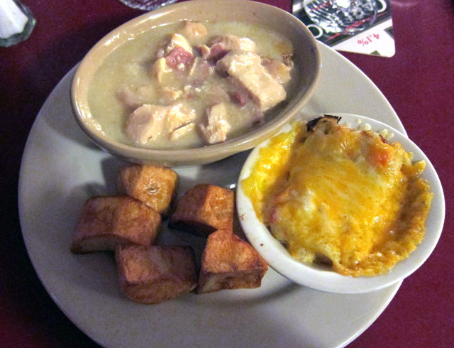 The pub area and two dining areas are nice, but I would recommend that all the “new” hideous seating and tables be replaced by wood. Hey, you can buy great old chairs for $5, or a tad more. And mismatched is cool! Hey guys – you can improve the ambiance and the lighting. Meals, however, are reasonable, plenty, and British (lacking in color). But we left satisfied, albeit not having engaged in “fine dining.” It was wonderful to see many “locals” in the pub room – the area needs such a venue – good work on that. If you are cruising down NH 101 between Peterborough and Wilton, I do suggest that you stop in and sample. After all, that is what life is all about.