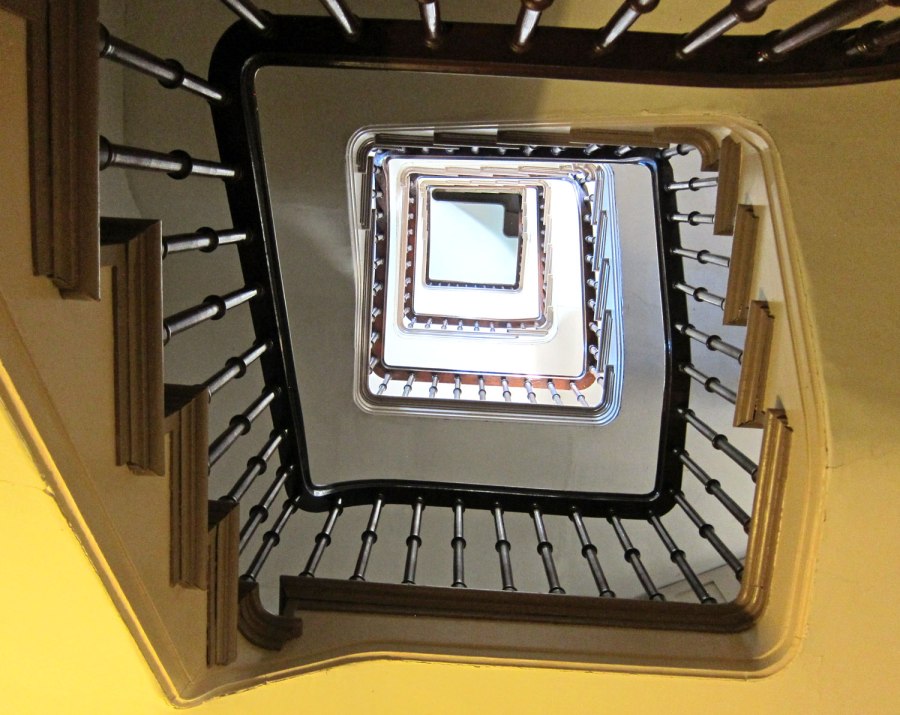 Looking up the stairs in the tower.