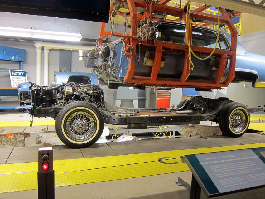 The “body drop” in “America’s Motor City” exhibit – part of an actual assembly line.