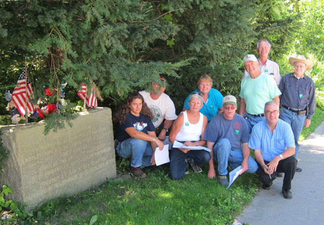 And we stopped a cyclist to take a group shot at the Fort Ranger monument on the Crown Point Road.
