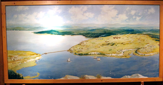 Painting showing Fort Ticonderoga on Left, and Mt. Independence on Right