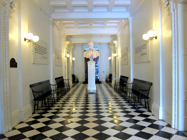 Entrance Hall of the Vermont State House with original 1860 marble floor.