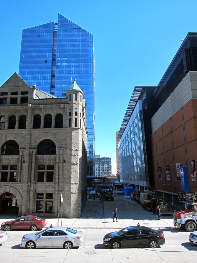 Original Gare Windsor to the left, and new Centre Bell on the right. Original tracks would have run through new center and to the left.