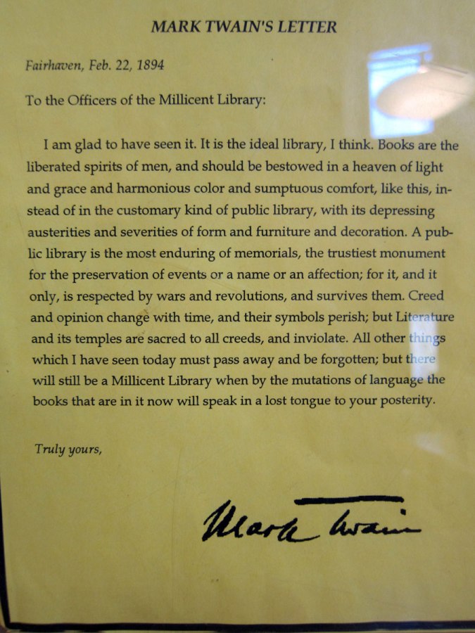 Letter Twain wrote about his visit to the library.