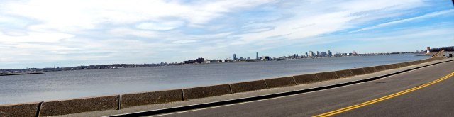 From there I followed Quincy Shore Drive (along Quincy Bay) north toward I-93 and Boston. Never had I been along this area – great “filling in more map.” I turned onto the road for Squantum Island first settled about 1638 to explore. But now just mostly 20th century homes. And below, a different view of Boston.