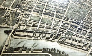 - Part of the 1876 map of Lawrence showing the dam, north canal, and city area and large park