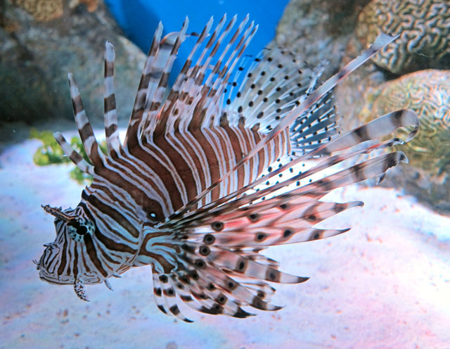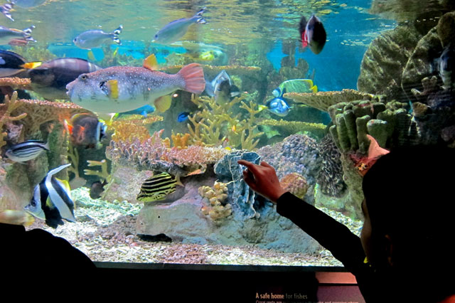 Surrounding the massive ocean tank are displays on four levels. Most amazing fish I have ever seen, and lots of information to read. Sometimes a fish will even pose for you.