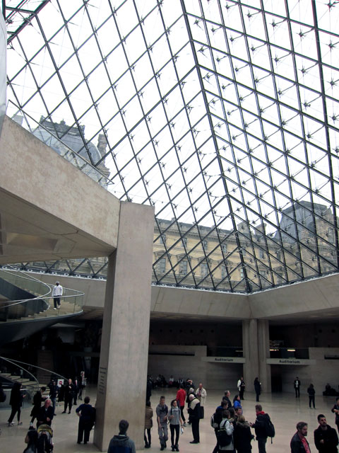 Entrance way to the Louvre one level down from the courtyard.