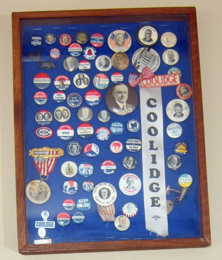 A closeup of some of the campaign buttons brought out of storage for the lecture.