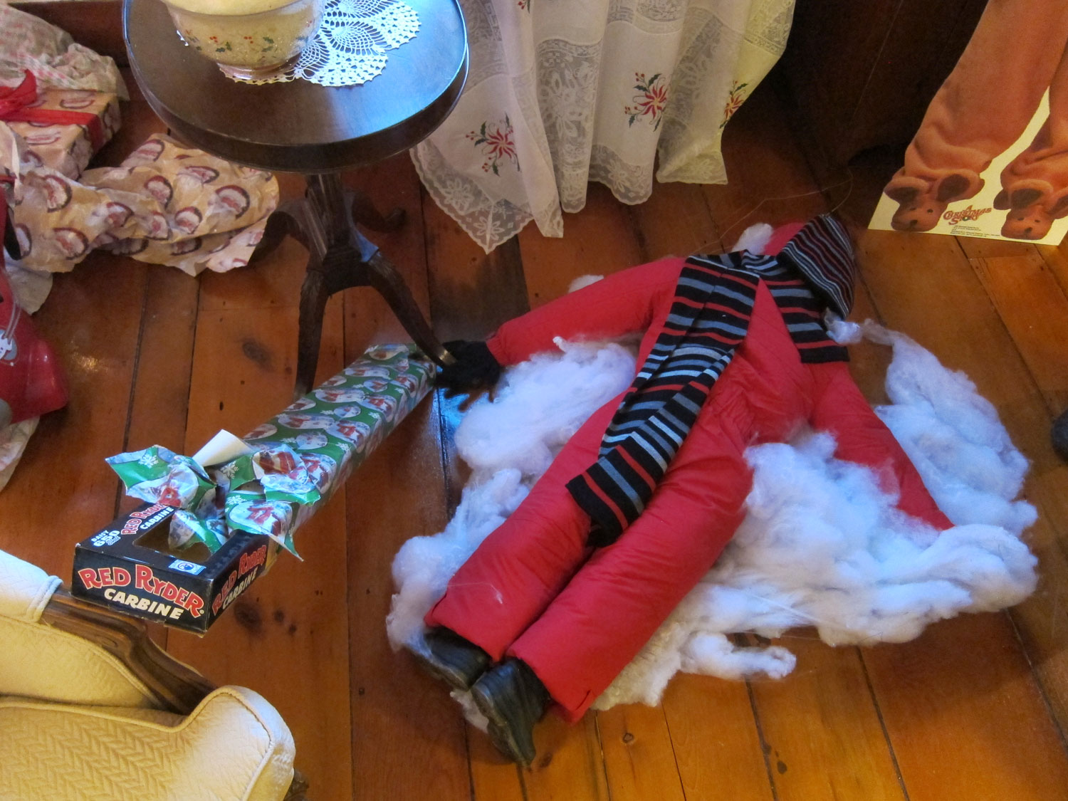Ralphie in his snow suit alongside his coveting Red Ryder