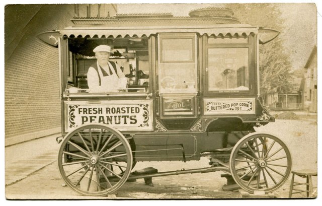 In the summer of 1965, high school friends and I attended a “stock car race” in Darlington, South Carolina. Outside of an “old country store” there I spotted a turn of the century Bartholomew “Boss on Wheels” Peanut Roaster. Made in Vineland, New Jersey, the peanut roaster is “fired” by kerosene. I bought it, and arranged to have it shipped back to Connecticut. I have had it since, mainly in storage. But used it often in the 1980s in parades and at school functions, dispensing Popcorn. It is in my blood!!