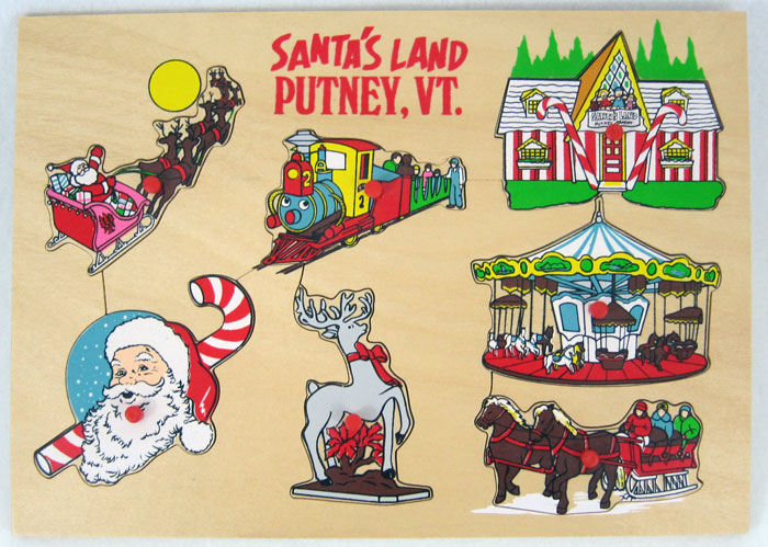 I have many such collections of souvenirs. Originally in Santa’s Land Railroad Station there was an extensive exhibit of Santa’s Land souvenirs from over the years. Sadly, during the parks dark days vandals stole or destroyed what was there. I hope to amass a collection to give to David, who rescued the park, with the hope he can reinstall the exhibit. Here is what I have, and if you wish to contribute something for this project, please let me know.