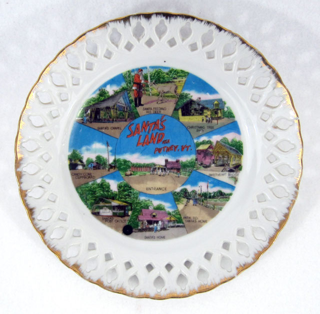 called “ribbon plates,” this 8 inch plate has a number of early scenes around the park, including “Santa’s Post Office.”