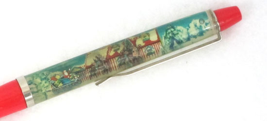 a highly prized “cross-over” collectible is the ball-point pen with a moving Santa and Sleigh in fluid in the top section – called “Motion Floaty.” It is marked “Made in Denmark”