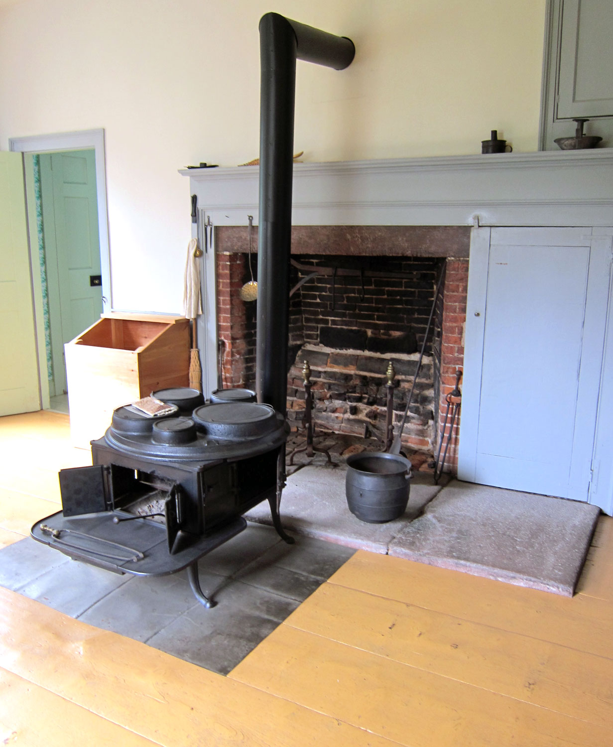 NEVER have I seen a stove like this. Small firebox in front, you can see oven door on the right, and a revolving top with removable lids to allow pots to be placed in. AMAZING
