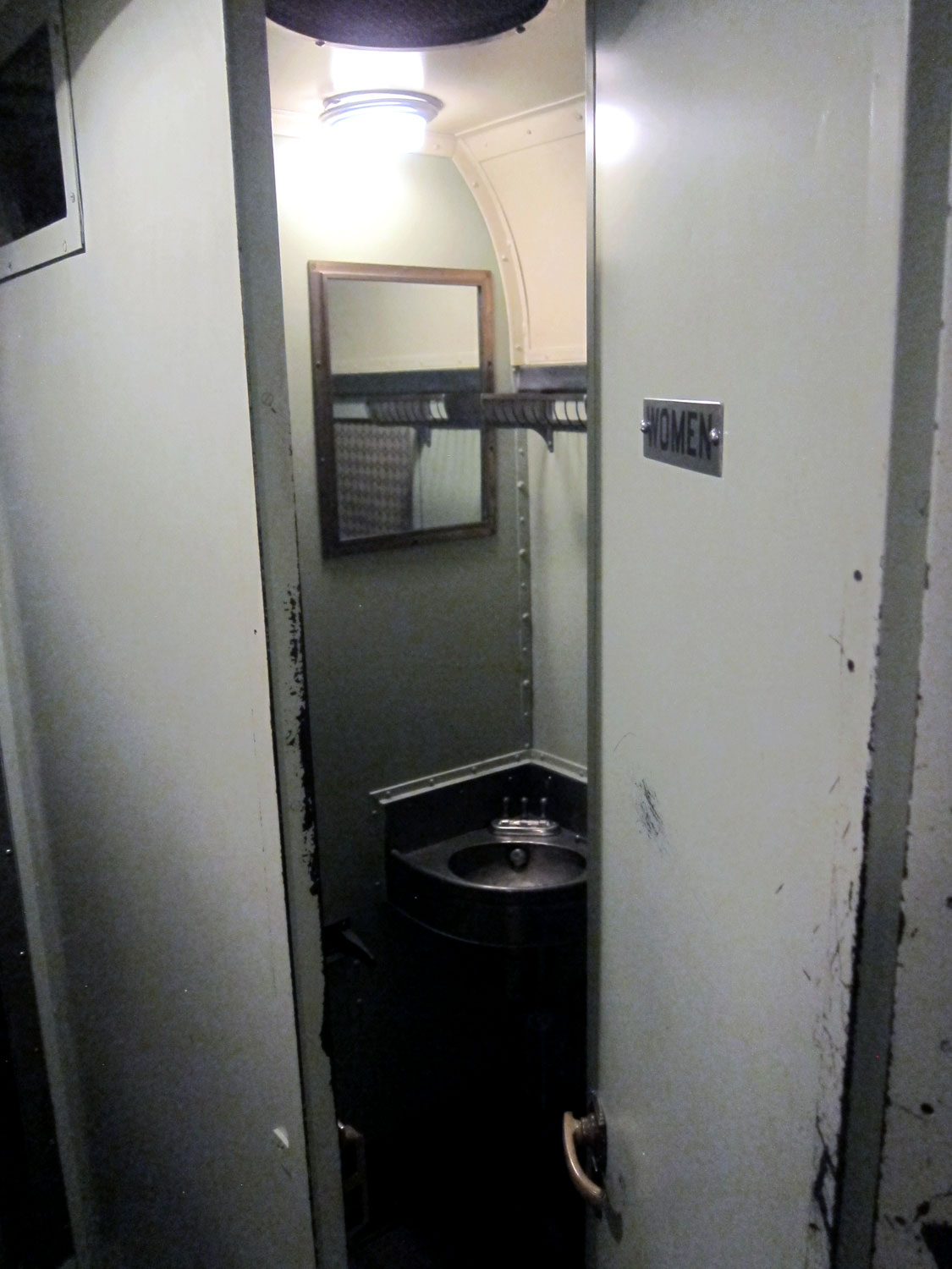 One of two bathrooms. Door is fully open. No way anyone in the 21st century could enter.
