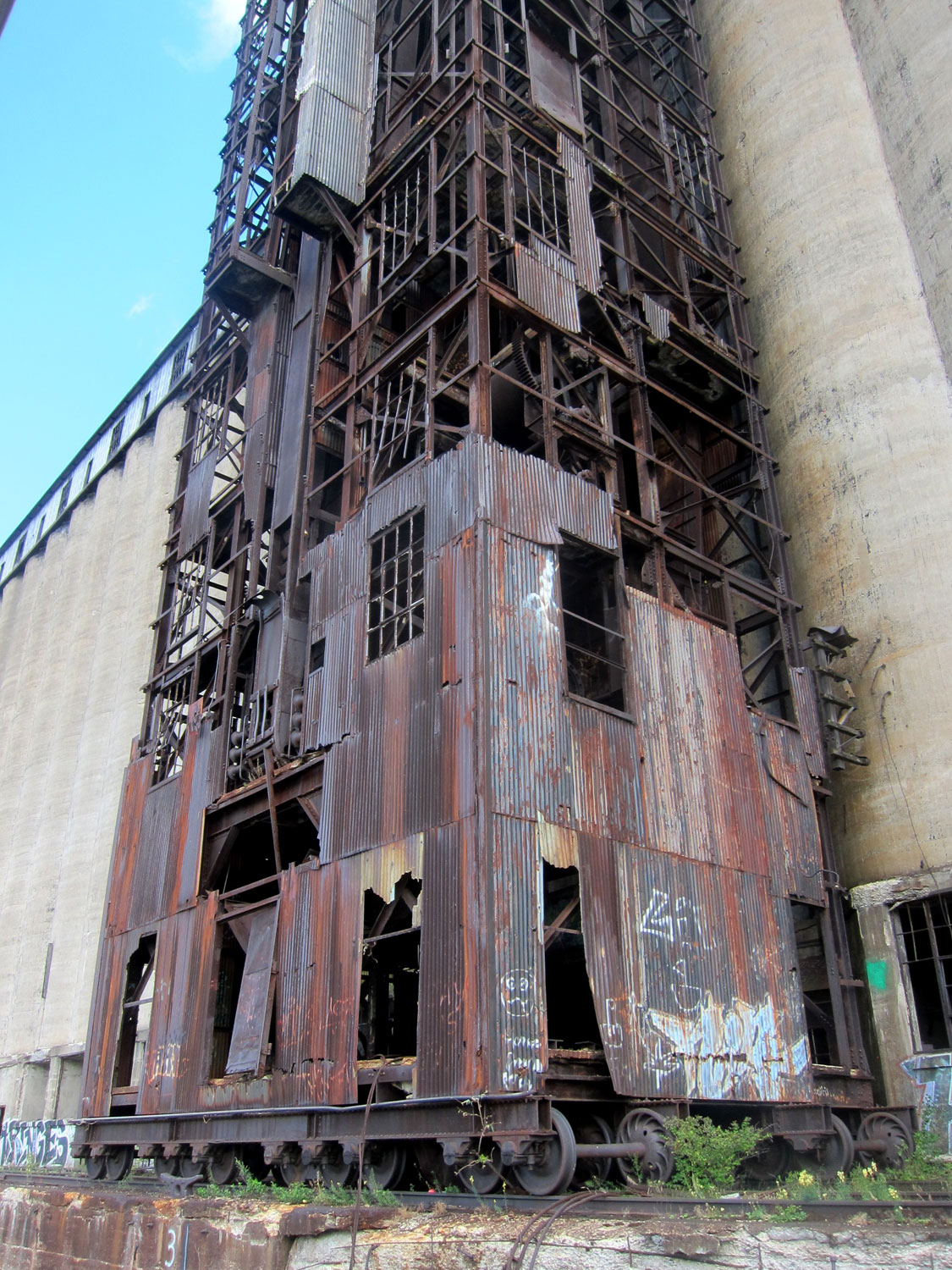 Note this moving apparatus for loading the silos is on railroad tracks